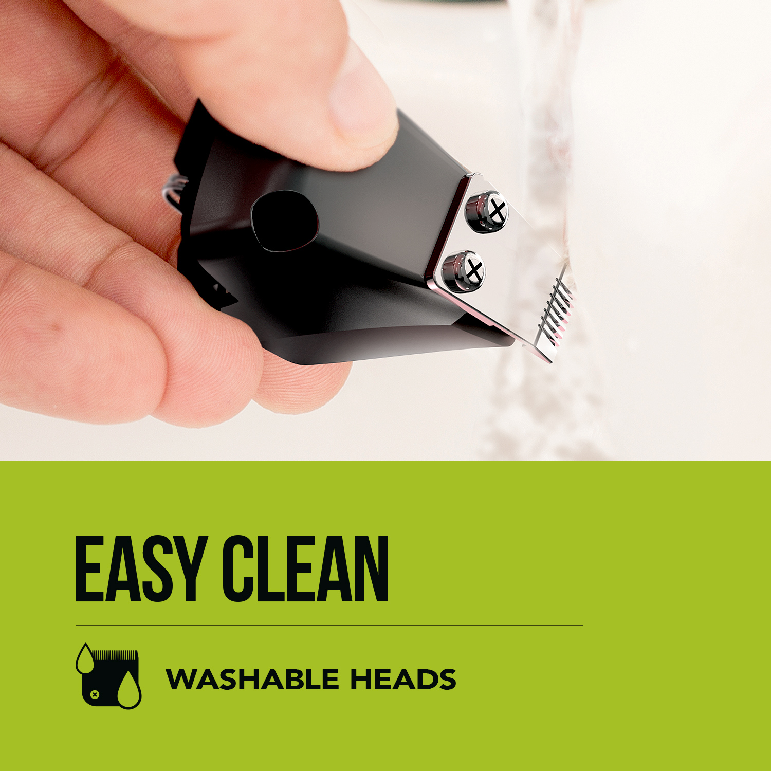 When finished with your grooming, the heads can simply be removed and placed under water to wash away any residue hair ready for the next trim.
